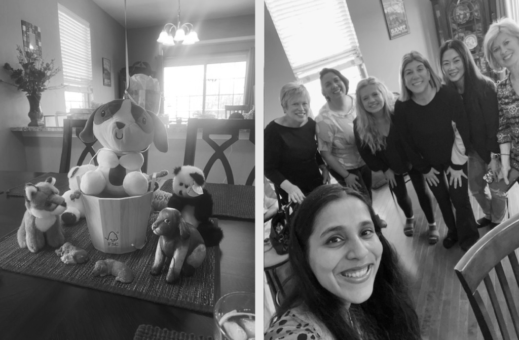 It’s hard to comprehend that it’s been years of these friendships, and fast forward to now. These same dog-walking new friends threw me a baby shower about a month ago. Seven women all gathered at Pam’s house, and brought home-cooked food and gifts. Unlike the usual brief, passing conversations outside with our dogs, we had the chance to sit, share a meal, and what felt like 30 minutes turned into 3 hours of hearty conversations around Pam’s ornately-decorated living room. Different ages, different backgrounds, connecting only through our proximities and canine companions. I felt so showered and undeserving.
