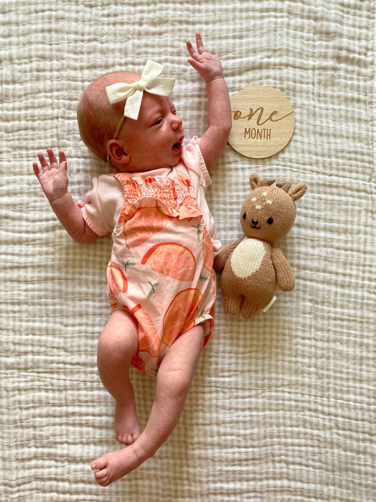 1 month. Of course it goes fast. Some days feel long, but at the same time I feel like I just had her last week.